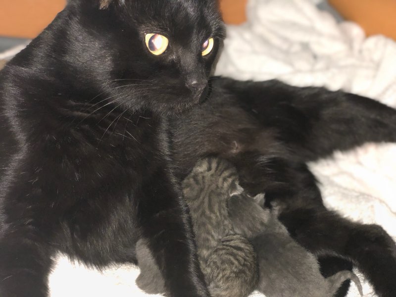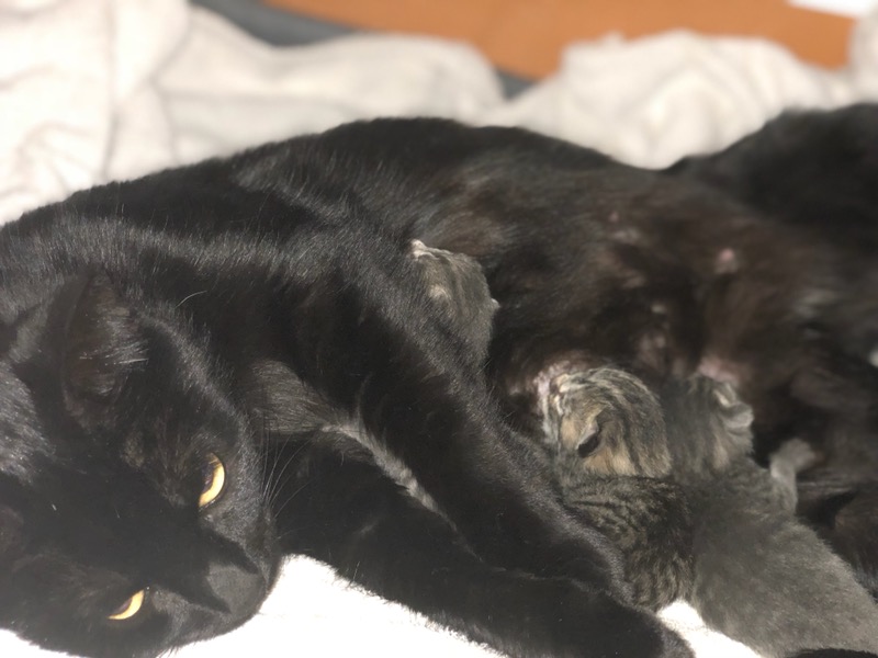 This is mama Lacey and her kittens, born in March 2016. All have since been adopted.